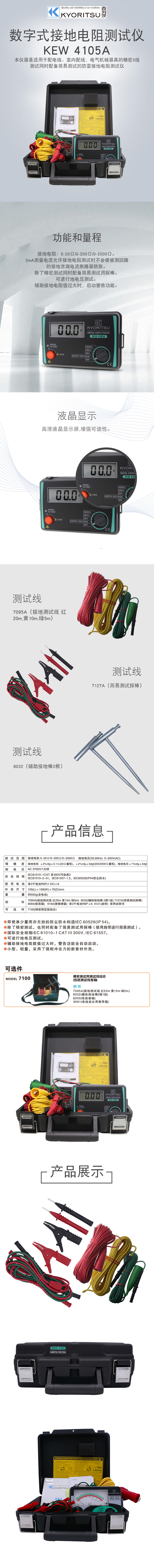 訂貨號:KEW4105AH 品牌:日本克列茨(KYORITSU) 類別:電工儀表 / 電力儀器