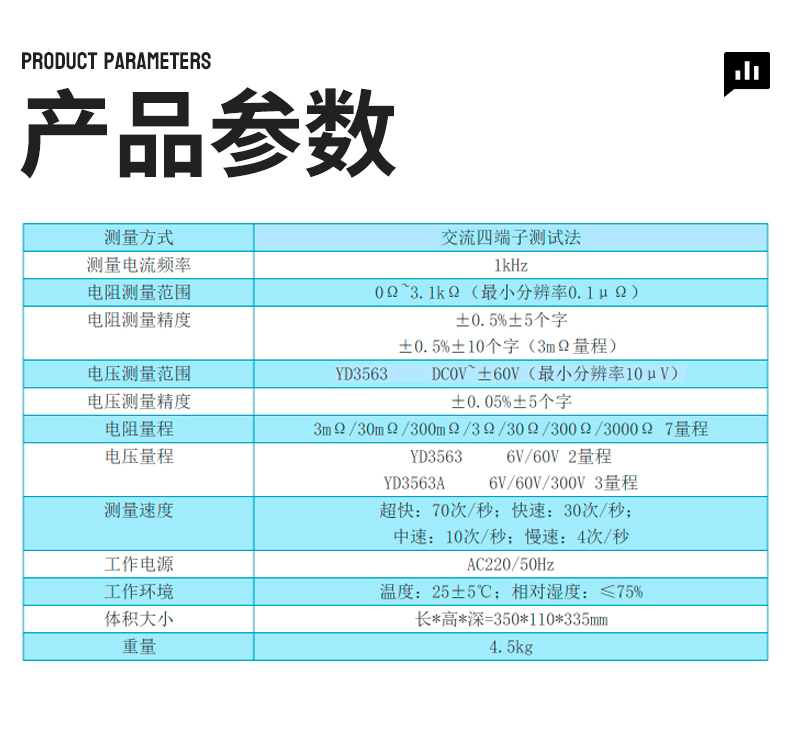 0Ω~3.1kΩ,7量程(最小分辨率0.1μΩ)