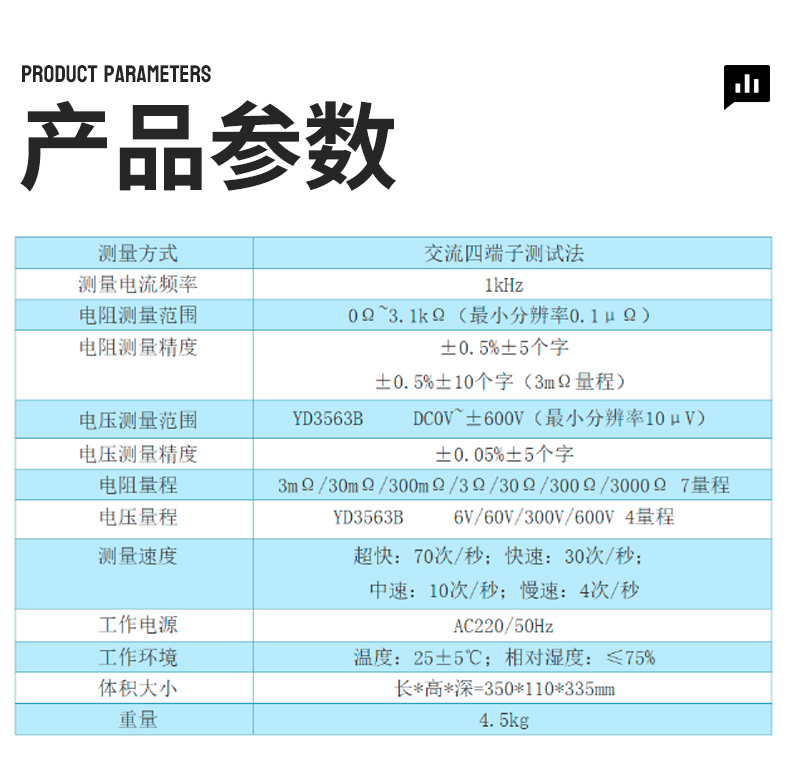 0Ω~3.1kΩ 7檔(最小分辨率0.1μΩ)