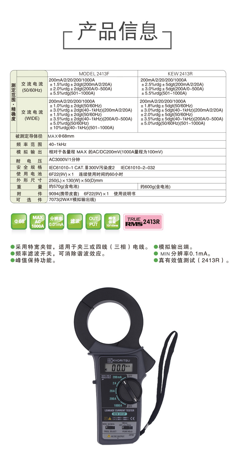 漏電鉗形表KEW2413F