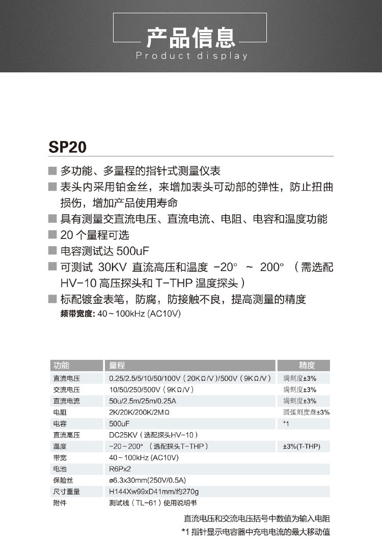 10/50/250/500V(9KΩ/V) |