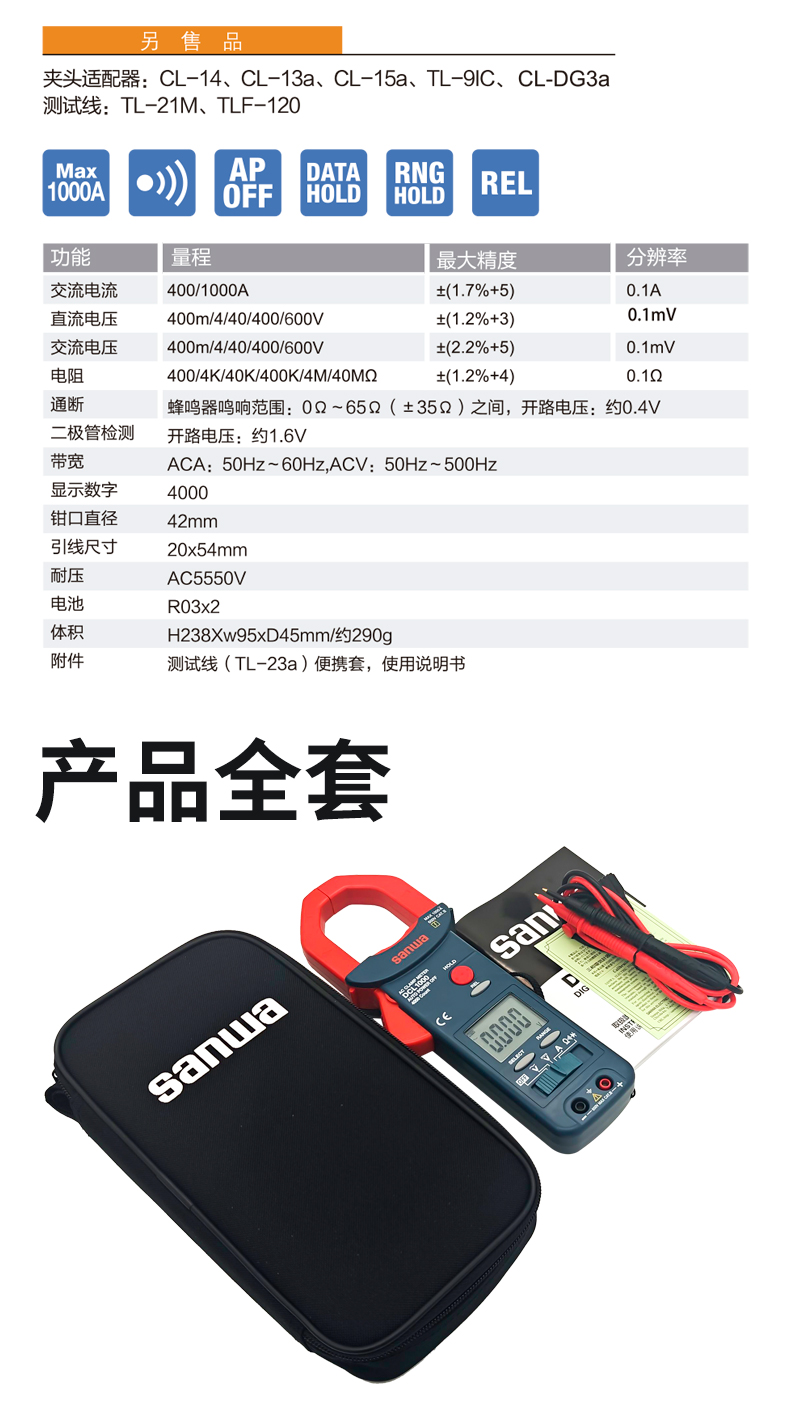 訂貨號:DCL1000 品牌:日本三和(SANWA) 類別:電工儀表 / 電力儀器