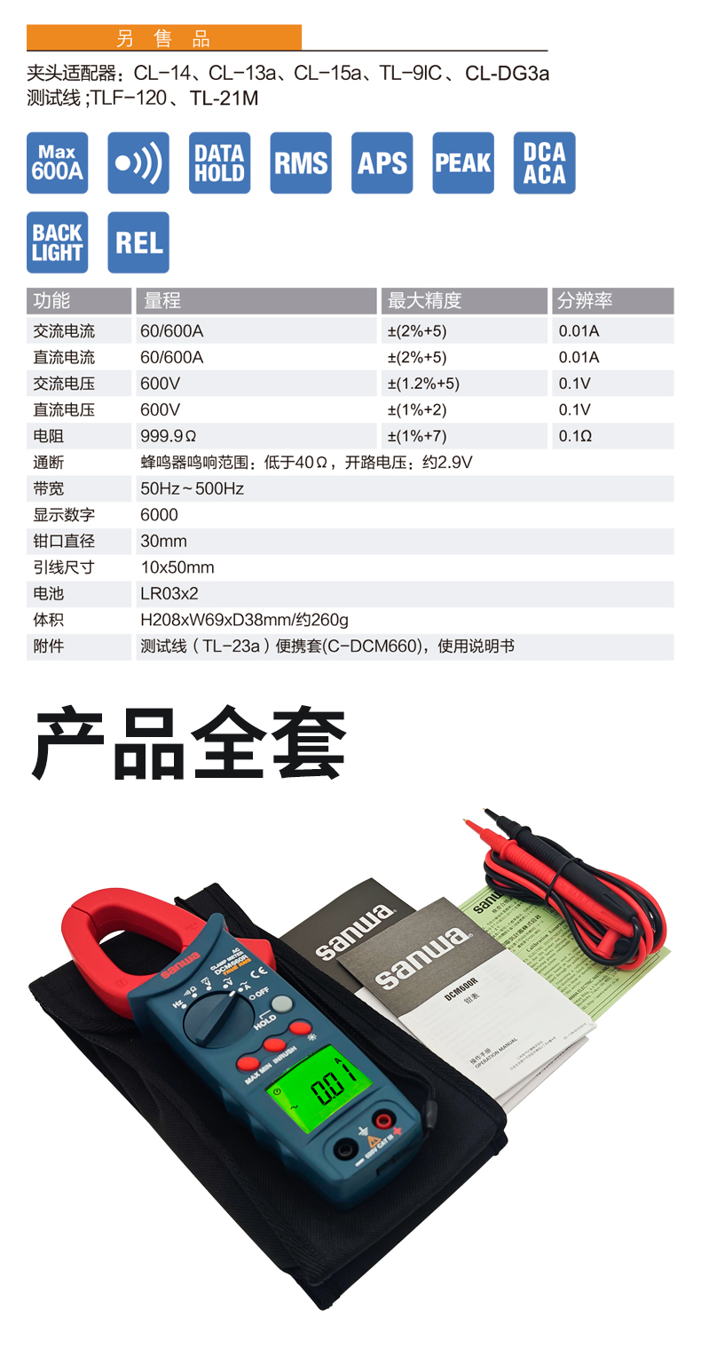 訂貨號(hào):DCM660R 品牌:日本三和(SANWA) 類別:電工儀表 / 電力儀器