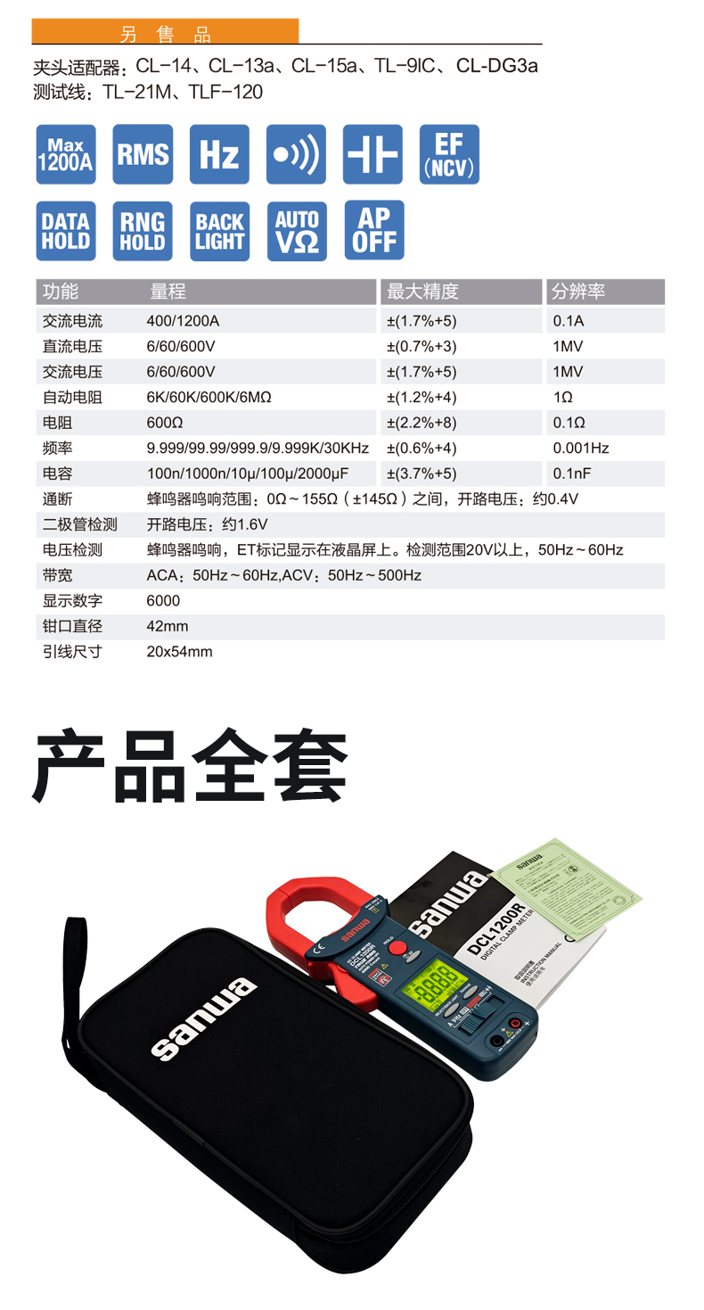 訂貨號:DCL1200R 品牌:日本三和(SANWA) 類別:電工儀表 / 電力儀器