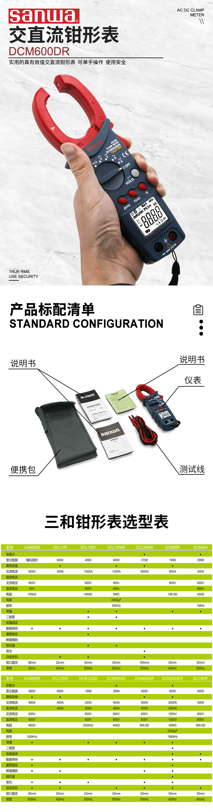 訂貨號:DCM600DR 品牌:日本三和(SANWA) 類別:電工儀表 / 電力儀器