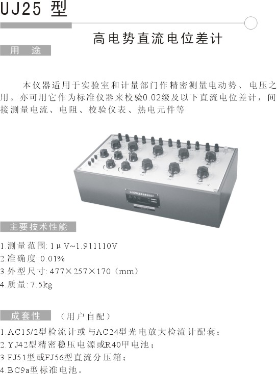 UJ25高電勢(shì)直流電位差計(jì)