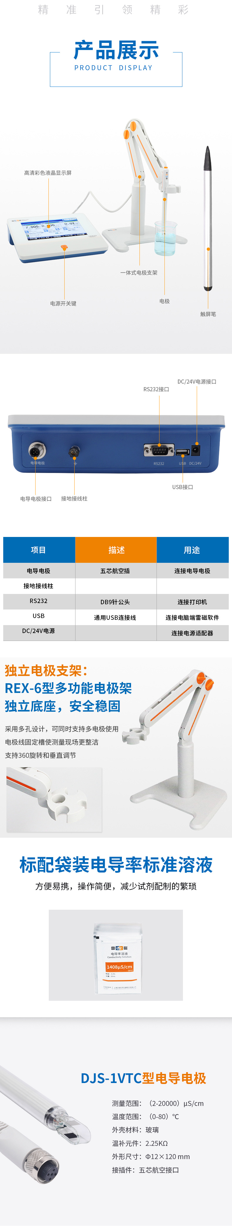 電導率、電阻率、總固態溶解物、鹽度值、灰分、溫度值