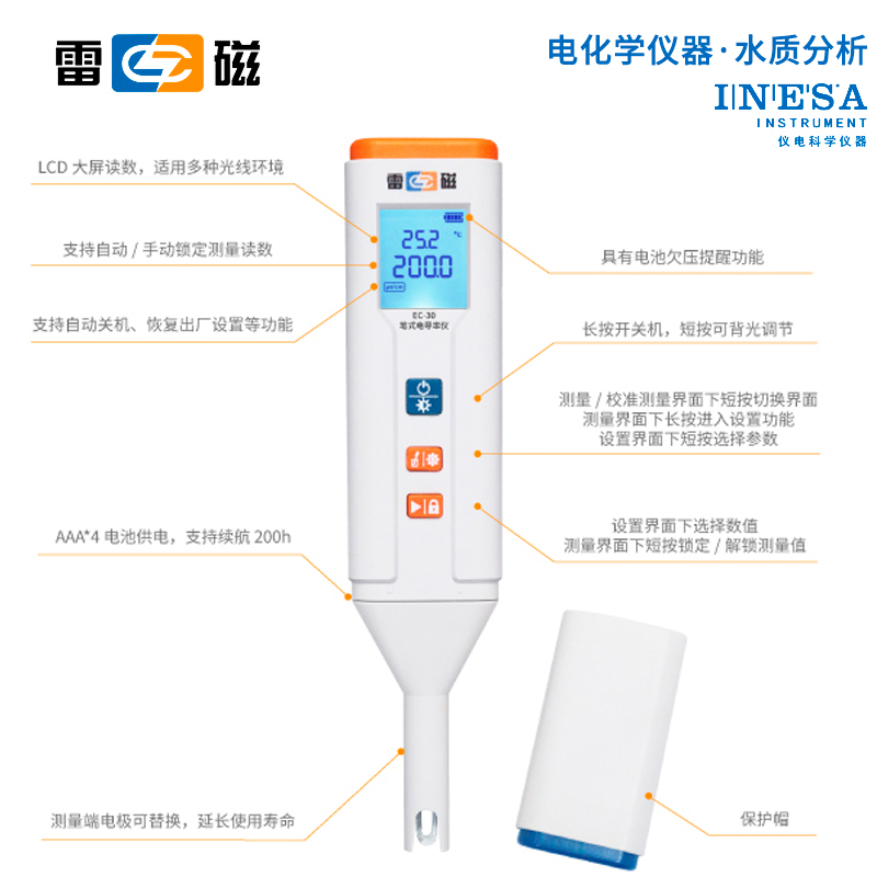 電導率、電阻率、總固態溶解物、鹽度值、溫度值