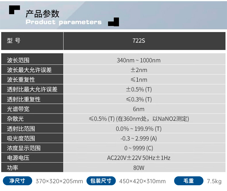 可見分光光度計722S