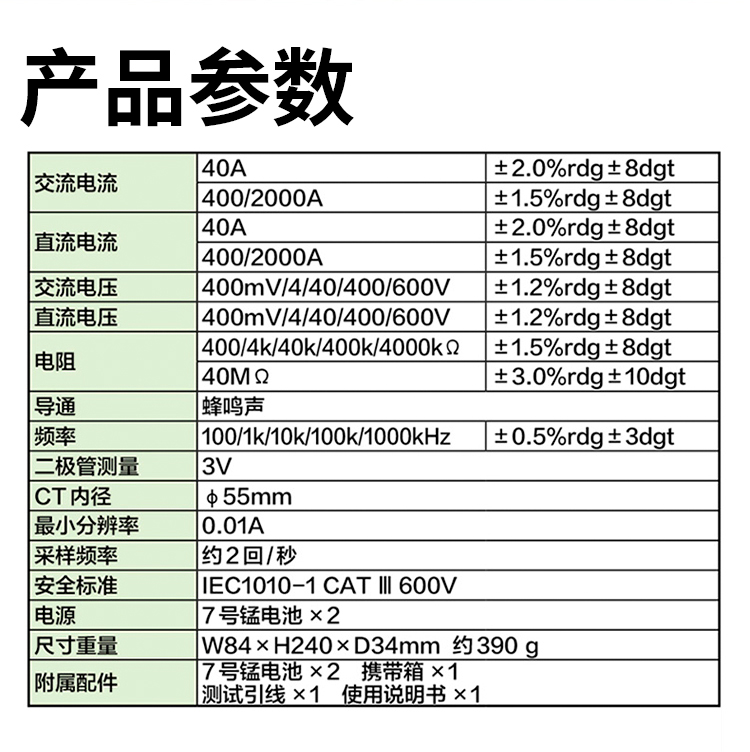 | 電壓測量范圍 | 400mV/4/40/400/600V |